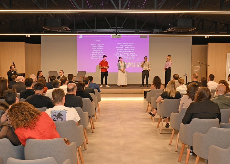 Durante o evento, a professora coordenadora do curso Prof. Dra. Bruna Dachery apresentou detalhadamente a estrutura da graduação, destacando a matriz curricular, a integração entre teoria e prática e a formação técnica voltada às demandas reais do setor vitivinícola. Na sequência, alunos egressos e acadêmicos em formação compartilharam depoimentos sobre suas trajetórias, ressaltando a qualidade do ensino, a aplicabilidade do conhecimento e a contribuição direta da formação para o desenvolvimento profissional, reforçando o caráter transformador do curso.