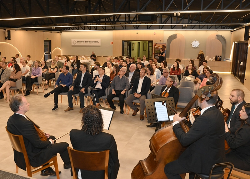 O Centro Empresarial de Flores da Cunha e a Universidade de Caxias do Sul (UCS) realizaram, na noite de quinta-feira, 22 de janeiro, o lançamento oficial da 3ª edição do curso superior de Tecnologia em Viticultura e Enologia. O encontro ocorreu no auditório da entidade e reuniu autoridades, representantes do setor vitivinícola, docentes, alunos, egressos do curso e comunidade interessada. A noite foi embalada pela apresentação do Grupo de Cordas da UCS, que trouxe um momento cultural ao evento.